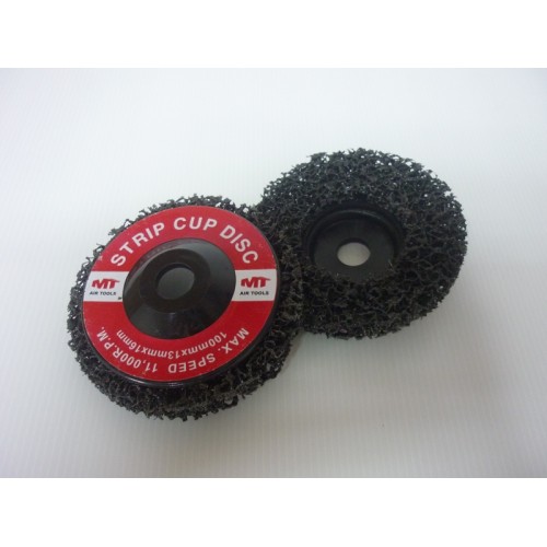 ลูกขัดลอกสี/ลอกสนิม ลูกขัดสาหร่าย 4 นิ้ว แบบฝาหลัง 100x15x16mm ลูกขัดสาหร่าย 4 นิ้ว แบบมีแป้น ยี่ห้อ MT (เอ็มที) เหมาะสำหรับใช้ในการขัดลอกสีเดิม หรือขัดลอกสนิม ไม่ทำให้เนื้อโลหะสึกหรอมาก เปรียบเทียบกับกระดาษทราย ใช้กับเครื่องเจียรลูกหมู ใช้ขัดลอกสีสนิม ด้วยโครงสร้างเส้นไนล่อน อย่างหนา เคลือบด้วยเม็ดทรายชนิดหยาบเป็นพิเศษ และเพิ่มปริมาณเม็ดทราย ให้มีความหนาแน่นมากขึ้น จึงทำให้ลูกขัดลอกสีสนิม MT สามารถใช้ทดแทนแปรงลวดได้อย่างสมบูรณ์แบบ ช่วยให้ทำงานสะดวกและรวดเร็วยิ่งขึ้น ใช้ได้ทนนานขึ้น อีกทั้งยังปลอดภัยจากปัญหาเส้นลวดจากแปรงหลุดกระเด็นทำให้เกิดอันตรายขณะใช้งาน ใช้ขัดลอกสีและสารเคมีที่ติดค้าง รวดเร็วและปลอดภัยกว่าแปรงลวด ใช้ทำความสะอาดผิวโลหะ รวดเร็วและไม่ทำให้ชิ้นงานเสียรูป ใช้ขัดทำความสะอาดรอยเชื่อมรวดเร็วและไม่ทำลายรอยเชื่อม
